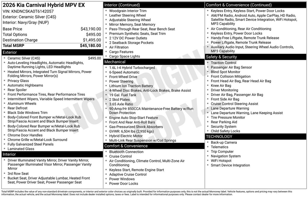2026 Kia Carnival Hybrid EX Minivan/Van
