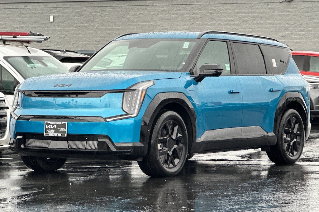 Ocean Blue 2026 Kia EV9 Land Nightfall Edition + 6 Passenger AWD 1-Speed Automatic Electric Motor Black Exterior Trim, Black Finish Exterior Emblems, Black Headliner, Carpeted Floor Mat, 6-Passenger, Nightfall Edition Package, Wheels: 20" Alloy with Black Finish. Price includes: $10000 - Kia Customer Cash. Exp. 05/04/2026