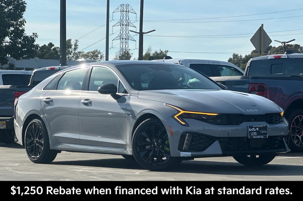 Wolf Gray 2026 Kia K5 GT GT1 Pkg FWD 8-Speed DCT I4 12.3" Instrument Display, Active Sound Design, Auto Up/Down Front Passenger and Rear Windows, Blind-Spot View Monitor, Bose Premium Audio, GT1 Package, Heated Steering Wheel, Memory Driver's Seat and Outside Mirrors, Parking Collision Avoidance-Assist - Reverse, Parking Distance Warning - Side, Power Folding Mirrors, Power Front Passenger Seat, Smartphone Digital Key, Surround View Monitor, Ventilated Front Seats, Wheels: 19" x 8.0J Gloss Black Custom Alloy.